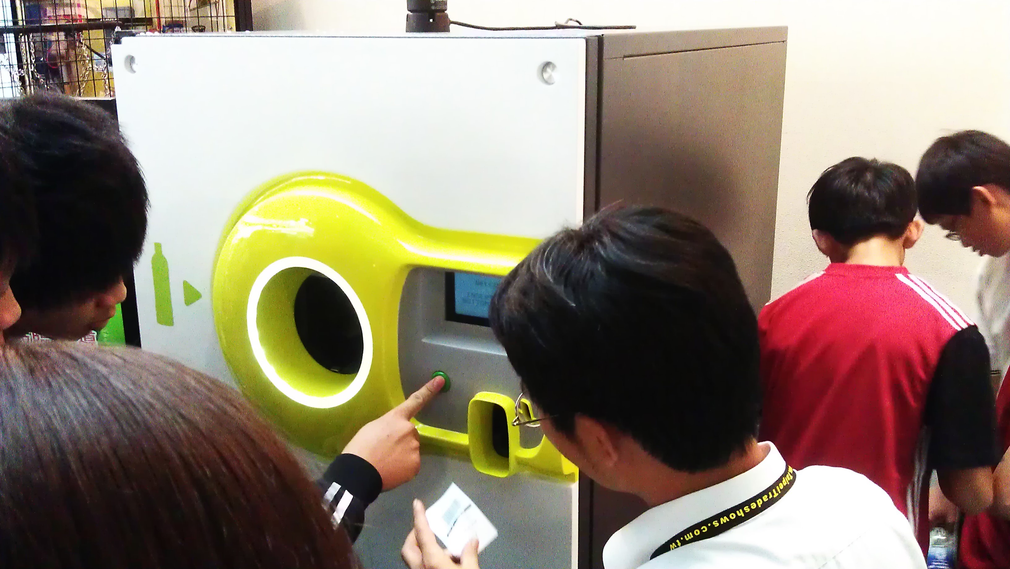 2012年9月,台北國際發明暨技術展於世貿一館展開。 退瓶機也加入參展行列,展場湧進大批民眾帶著空瓶罐想試試退瓶機神奇之處。 寶特瓶及鐵鋁罐經壓縮處理後,減容率可達到60%~75%。回收物經減容後可有效降低儲存及 清運成本,降低碳排放。 參展單位還特別在現場放置投籃機,民眾帶著空瓶罐來退瓶即可獲得代幣免費投籃。 不但能體驗到這台在歐美國家實行多年的前衛環保機器;還可享受投籃之樂,一舉兩得! 透過回收優惠的誘因,以及充滿樂趣與互動性的操作介面,提高了國人的回收意願,也提升 了企業綠色形象,簡單動作就可以為地球盡心盡力愛地球。 未來別再亂丟手上這個有價物品了 !